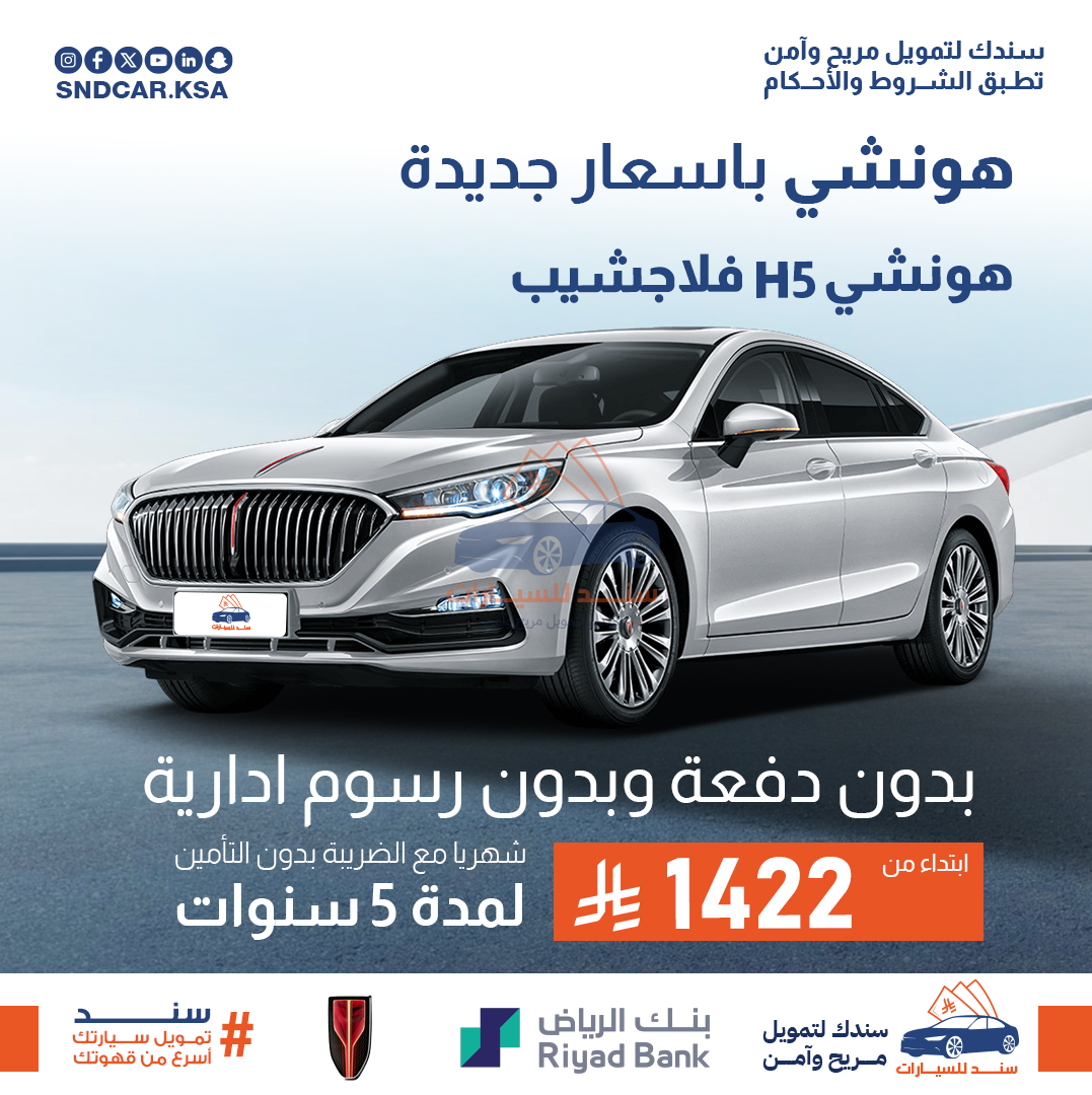 ـ السياره : هونشي H5 فلاجشيب  -الموديل :2023 - الوقود:بنزين ـ العداد :اصفار *الحاله: بطاقه جمركيه الوكيل : سعودي ( التوكيلات العالميه ) الضمان : 7 سنوات مفتوح الكيلوهات ▂▂▂▂▂▂▂▂▂▂▂▂▂▂ قياس المحرّك 1.8 نظام المحرك بنزين الصمامات 16 صماماً أقصى قوة 196 حصان عزم الدوران 320 نيوتن استهلاك الوقود 16.1 كلم/ لتر تيربو متاح محرك كهربائي اضافي متاح ناقل الحركة اوتوماتيك نوع الجر دفع امامي وضع القيادة عادي - رياضي النمط سيدان العجلات 19 انش المقود تعديل يدوي عدد المقاعد 5 فتحة سقف بانورامية متاح نور عالي متكييف متاح أنوار أمامية بتقنية LED + أنوار أمامية نهارية متاح تحكم بإرتفاع الأنوار الأمامية متاح أنوار خلفية LED حساسات أمامية 4 نقاط متاح حساسات خلفية 4 نقاط + كاميرا خلفية متاح زر لتشغيل المحرّك متاح فرامل يد كهربائية متاح فتحات للتكييف في صف المقاعد الثاني متاح نظام تثبيت السرعة متاح عجلة قيادة مغلّفة بالجلد متاح تنجيد المقاعد جلد تعديل حركة مقعد السائق كهربائي تعديل حركة مقعد الراكب الأمامي كهربائي شاشة معلومات متاح عدد السماعات 4 MP3 / مدخل اضافي MP3 / مدخل اضافي واجهة بيانية USB النظام الصوتي متاح وسائد هواء أمامية (SRS) متاح كاميرا للرؤية الخلفية ( متعددة الزوايا ) كامرا 360 درجه نظام المساعدة في ثبات السيارة (VSA®) متاح نظام الفرامل المانعة للانغلاق (ABS) متاح نظام التوزيع الإلكتروني لقوة الفرامل (EBD)