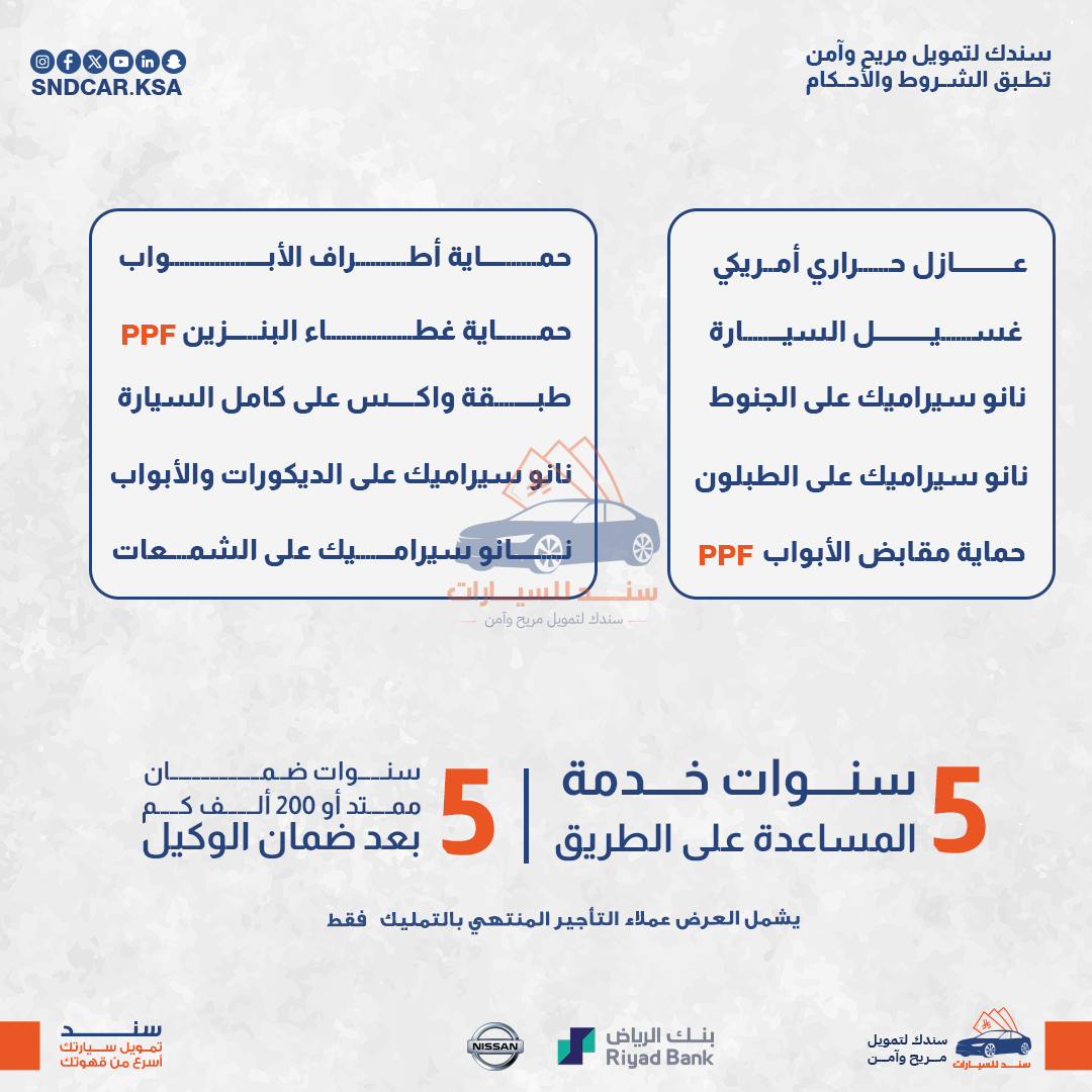 عزل حراري امريكي ٢- حماية اطراف الابواب ppf ٣- حماية مقابض الابواب ppf ٤- حماية غطاء البنزين ppf ٥- غسيل السيارة ٦- طبقة واكس علي كامل السيارة ٧- نانو سيراميك علي الطبلون ٨- نانو سيراميك علي الديكورات والابواب ٩- نانو سيراميك علي الجنوط ١٠- نانو سيراميك علي الشماعات