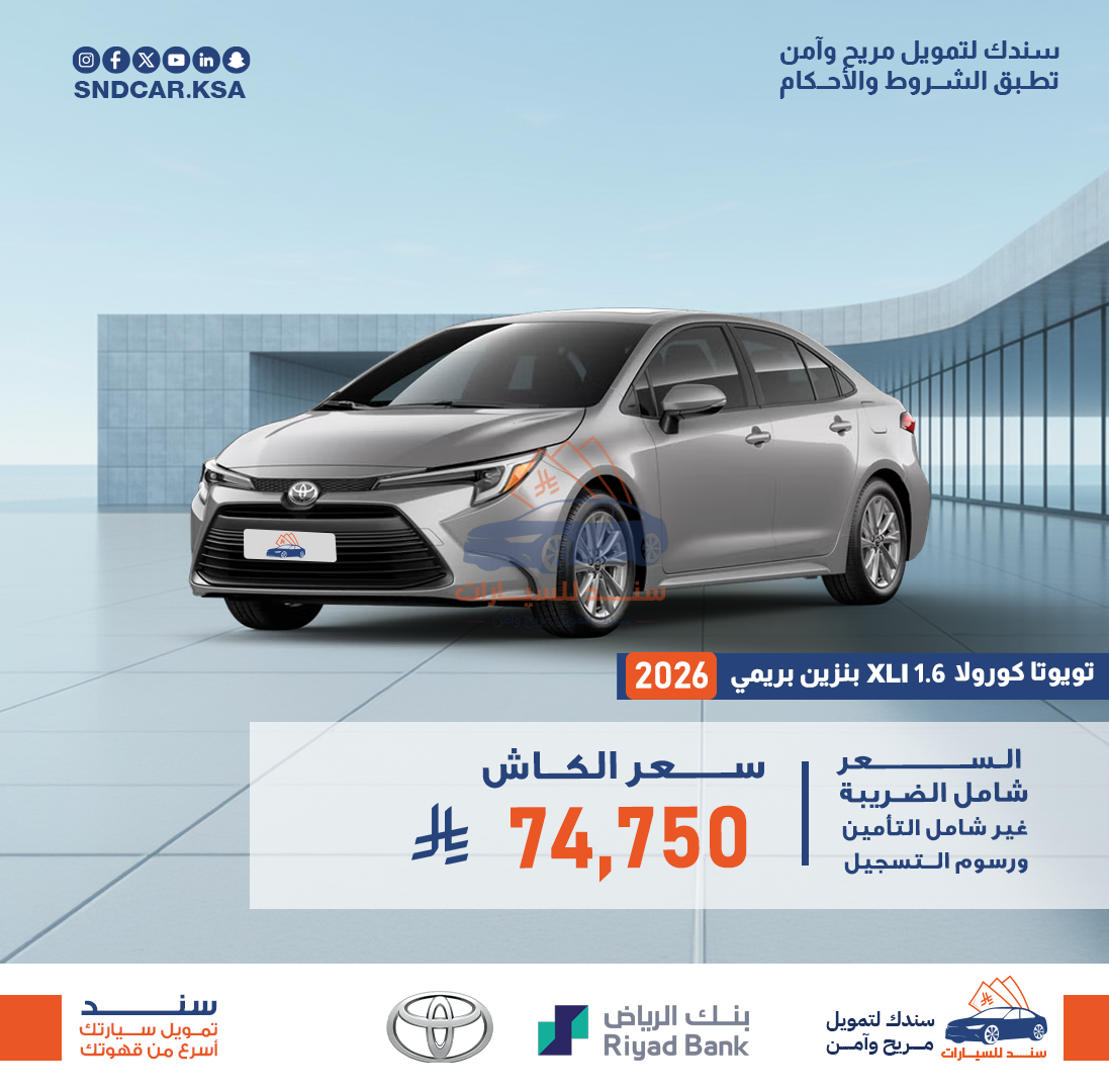 تويوتا كرولا 1.6 XLI بريمي 2026