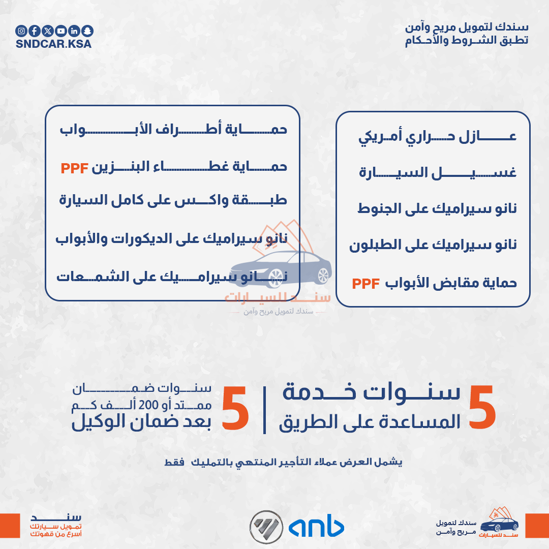 تظليل عازل حراري بضمان مفتوح(مدي الحياه) لكامل السياره - تشميع خارجي - تشميع داخلي - تلبيس الدعسات بلاستيك - حمايه اطراف الابواب - حمايه انوار - نانو سيراميك للجنوط