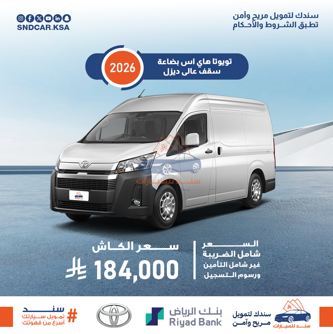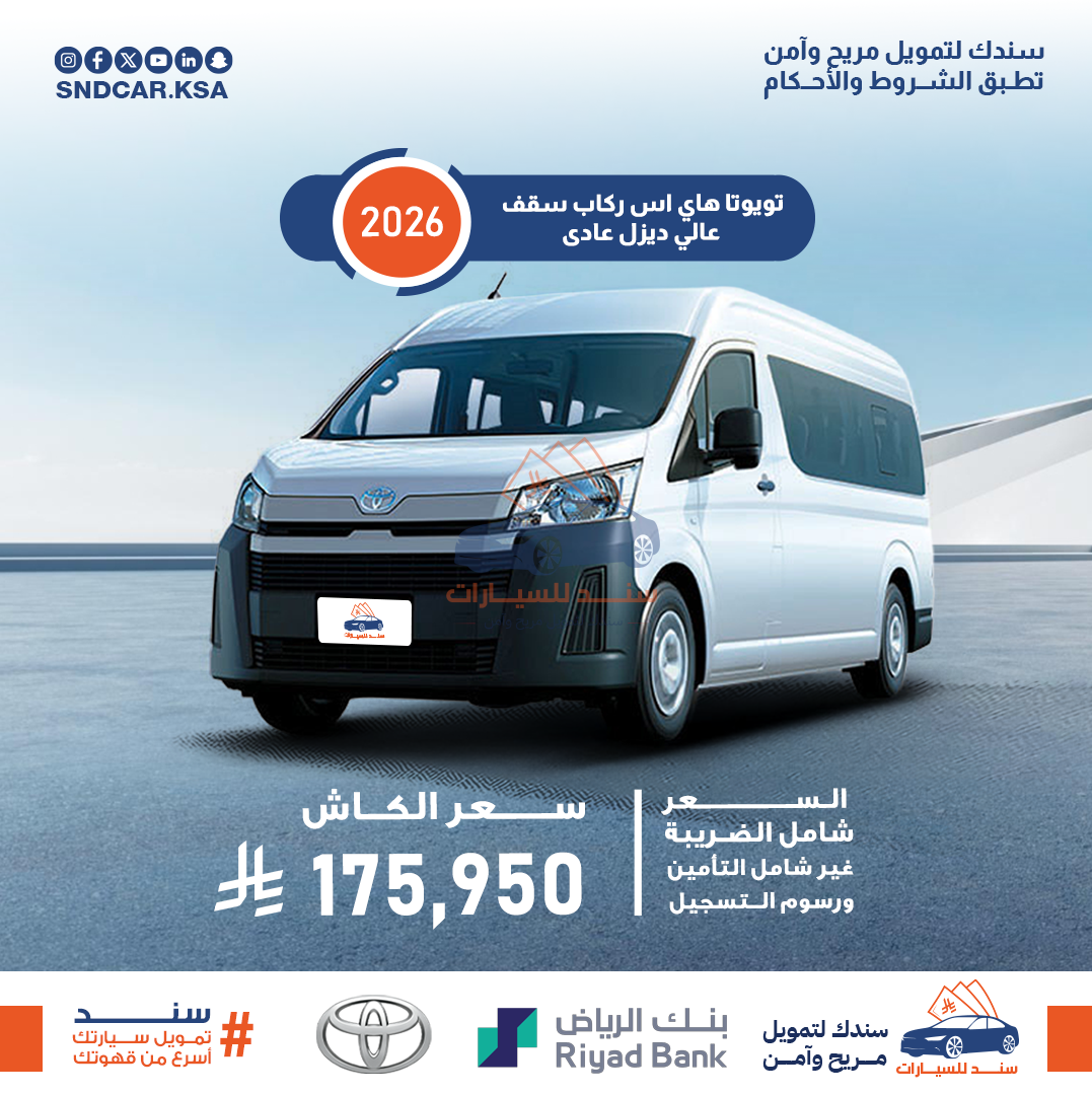 تويوتا هاي اس ركاب سقف عالي ديزل اتوماتيك 2026