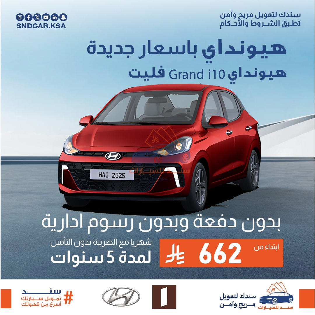 ـ المركبه: هيونداي Grand i10 ـ الموديل : 2025 - الوكيل : سعودي ـ العداد : اصفار - بطاقه جمركيه ـ اللون : رمادي ▂▂▂▂▂▂▂▂▂▂▂▂▂▂ **مواصفات السيارة: * محرك 1200 سي سي 4 سلندر * قير توماتيك * نظام دفع امامي * جنوط مقاس 14 انش * اشارات ب الرفارف * كشاف ضباب خلفي * انوار ليد خلفية * حساسات خلفية * ريموت * مقاعد قماش * زجاج كهربائي * مكيف امامي يدوي * مكيف خلفى * سنتر لوك للسائق * مدخل USB * منفذ طاقة * فرامل ABS * نظام الثبات الإلكتروني * حساس كفرات * عدد 2 ارباج * عدد 5 حزام