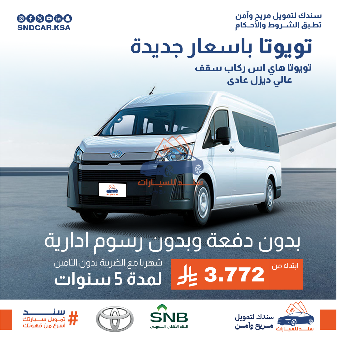 تويوتا هاي اس ركاب سقف عالي ديزل عادى 2026