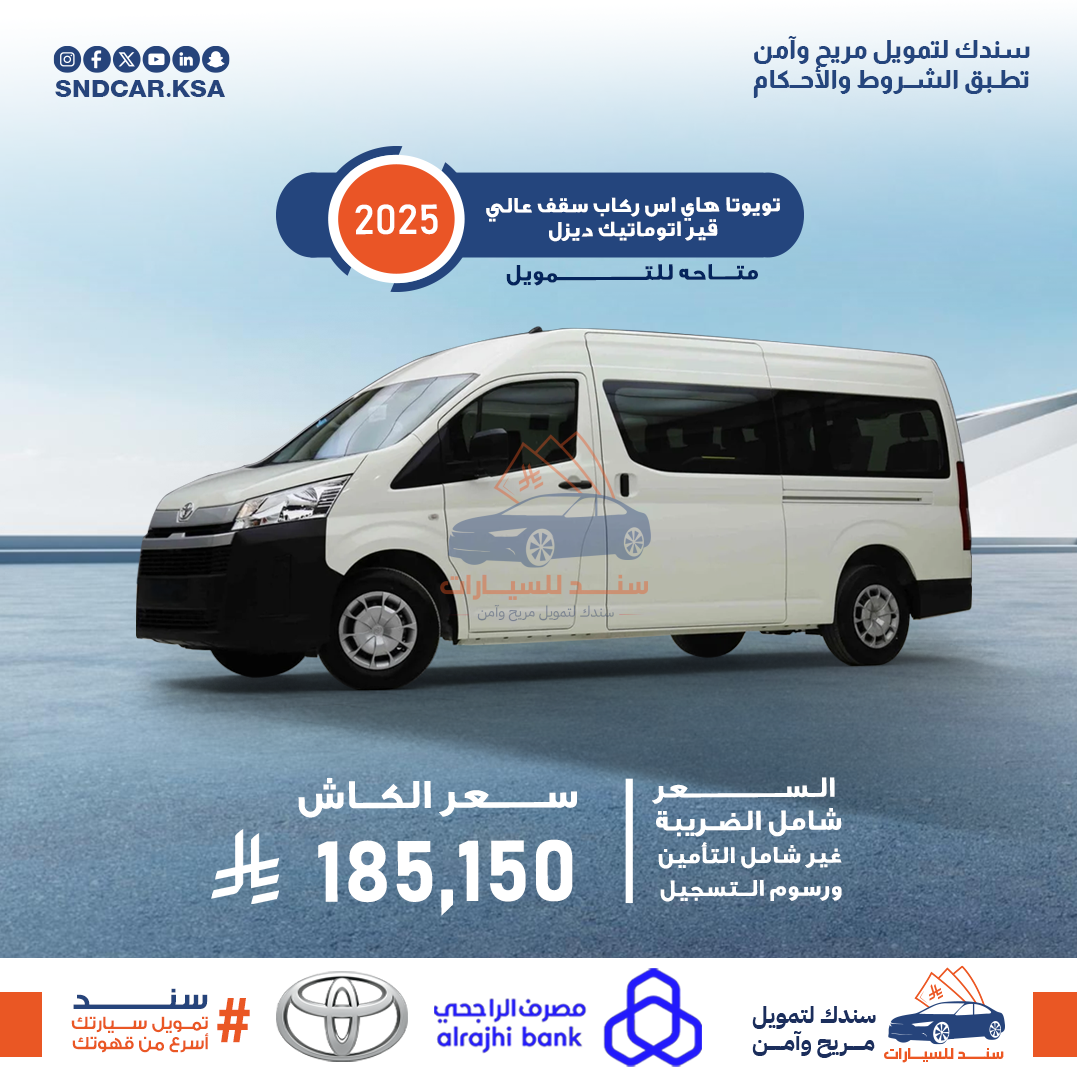 تويوتا هاي اس ركاب سقف عالي قير اتوماتيك ديزل 2025