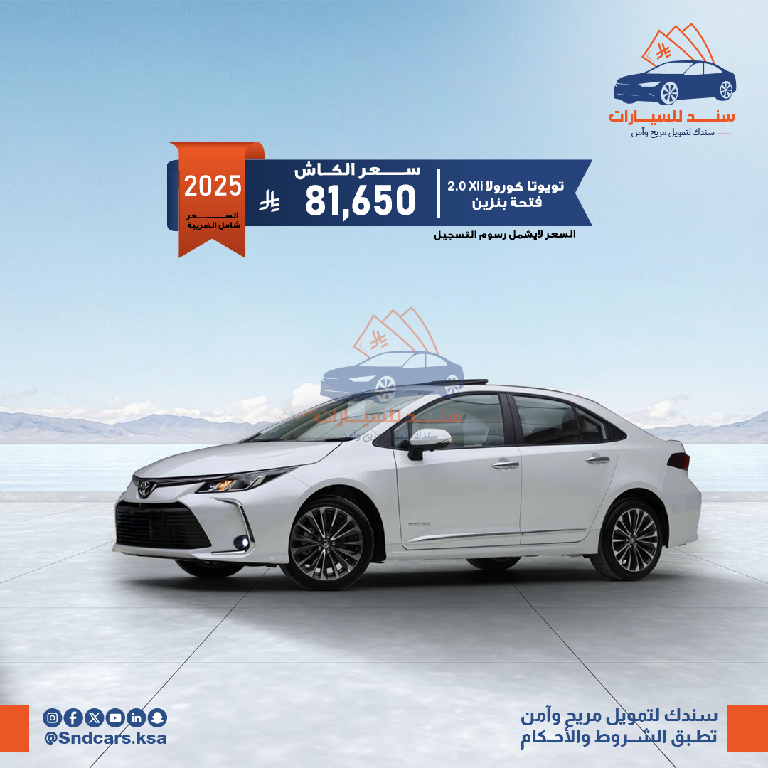 تويوتا كورولا XLI 2.0 طيس بنزين 2025