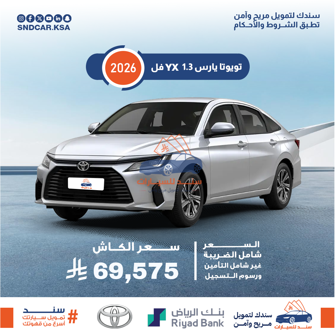 تويوتا يارس 1.3 y بلس 2026