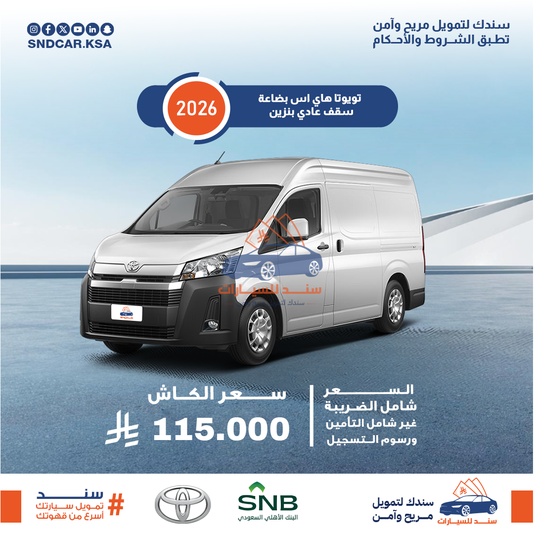 تويوتا هاي اس بضاعة سقف عادي بنزين 2026